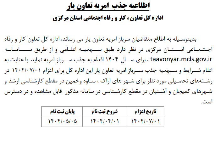 اطلاعیه جذب امریه تعاون یار ۱۱ تیر ۱۴۰۴ | ۱۲:۰۴ کد : ۵۲۷۴۸ اطلاعیه ارسال به دیگران نام شما ایمیل شما ایمیل دریافتکننده ارسال انصراف تعداد بازدید:۳۸۵ اطلاعیه جذب امریه تعاون یار